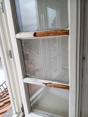 Nach dem Rückbau der alten Brüstungsverkleidung in der Katharinenhalle wurden zum Beispiel einige der Holzrahmen von der Drahtverglasung getrennt und für bevorstehende Reparaturen verwendet oder für andere Arbeiten eingelagert.