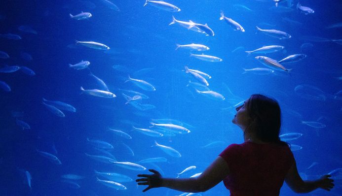 Tauchen Sie in den Aquarien-Rundgängen des OZEANEUMs in die Unterwasserwelt der nördlichen Meere ein. Es erwarten Sie 50 teils riesige Becken, in denen Sie verschiedene Lebensräume und ihre jeweiligen Bewohner entdecken. Alle Aquarien sind mit aufwendiger Technik ausgestattet und naturnah gestaltet. An jedem Becken hängt ein individueller Wasserkreislauf, der es erlaubt, Salzgehalt, Wassertemperatur und Strömung für die Tiere anzupassen.