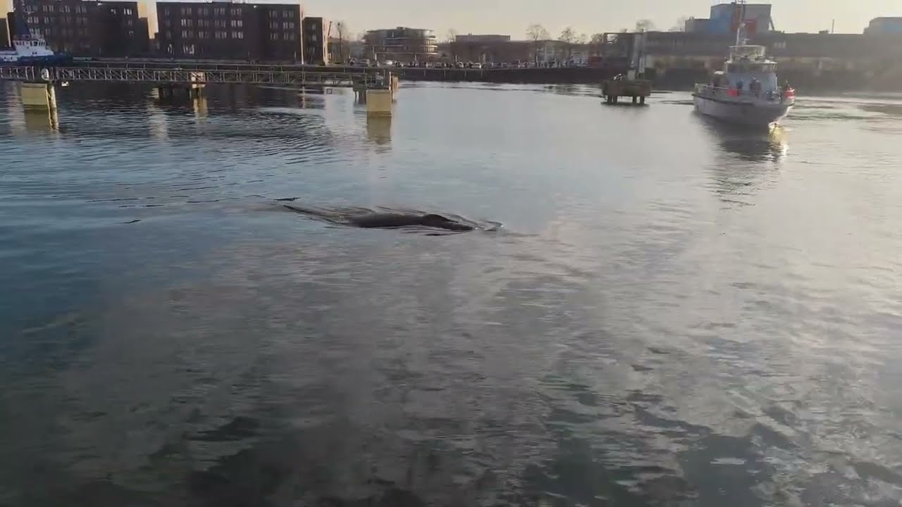 Schließlich gelang es dem Finnwal, den Weg aus dem Hafen zu finden. Wir hoffen sehr, dass er die Ostsee wohlbehalten wieder verlassen kann.