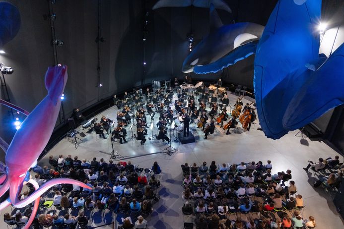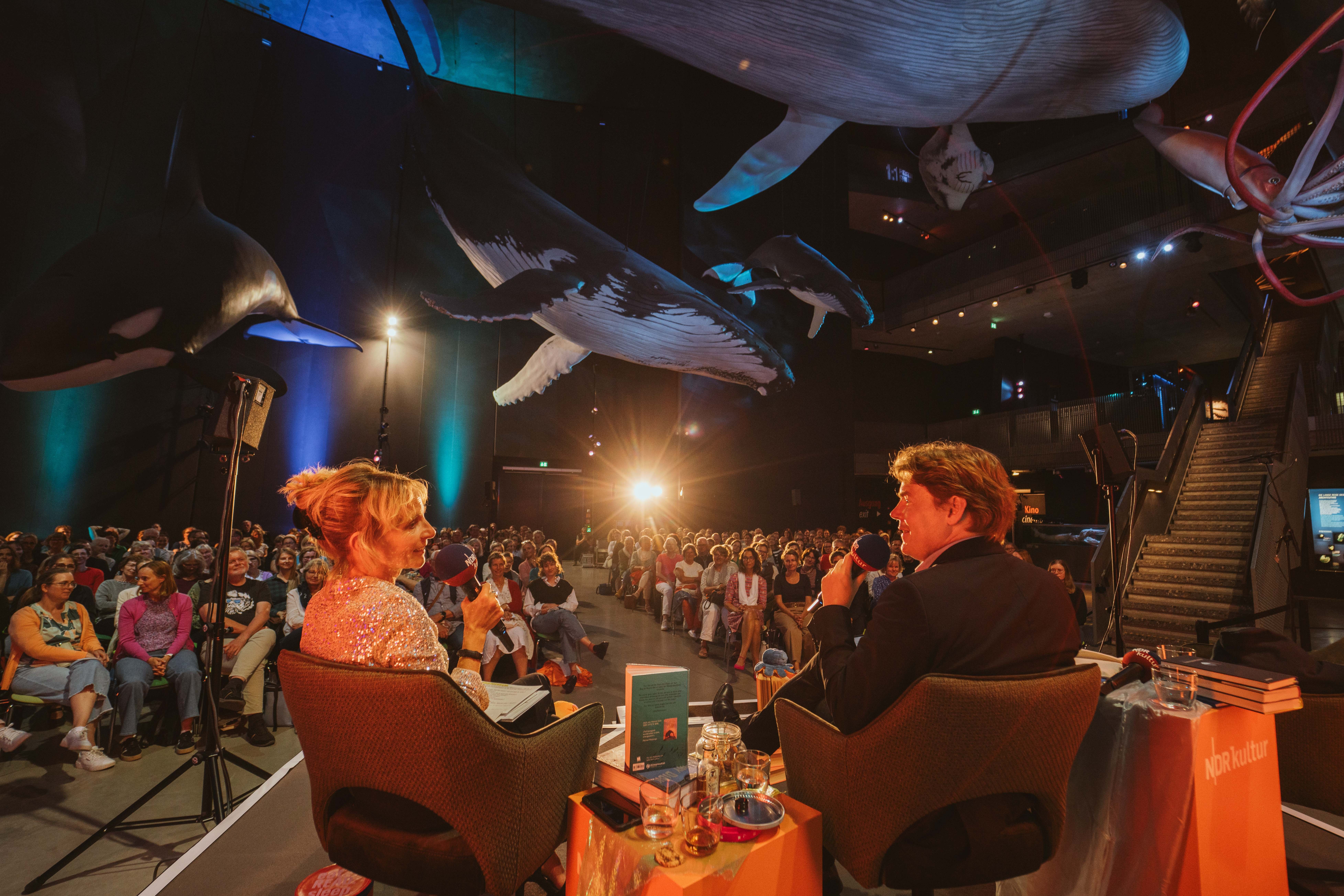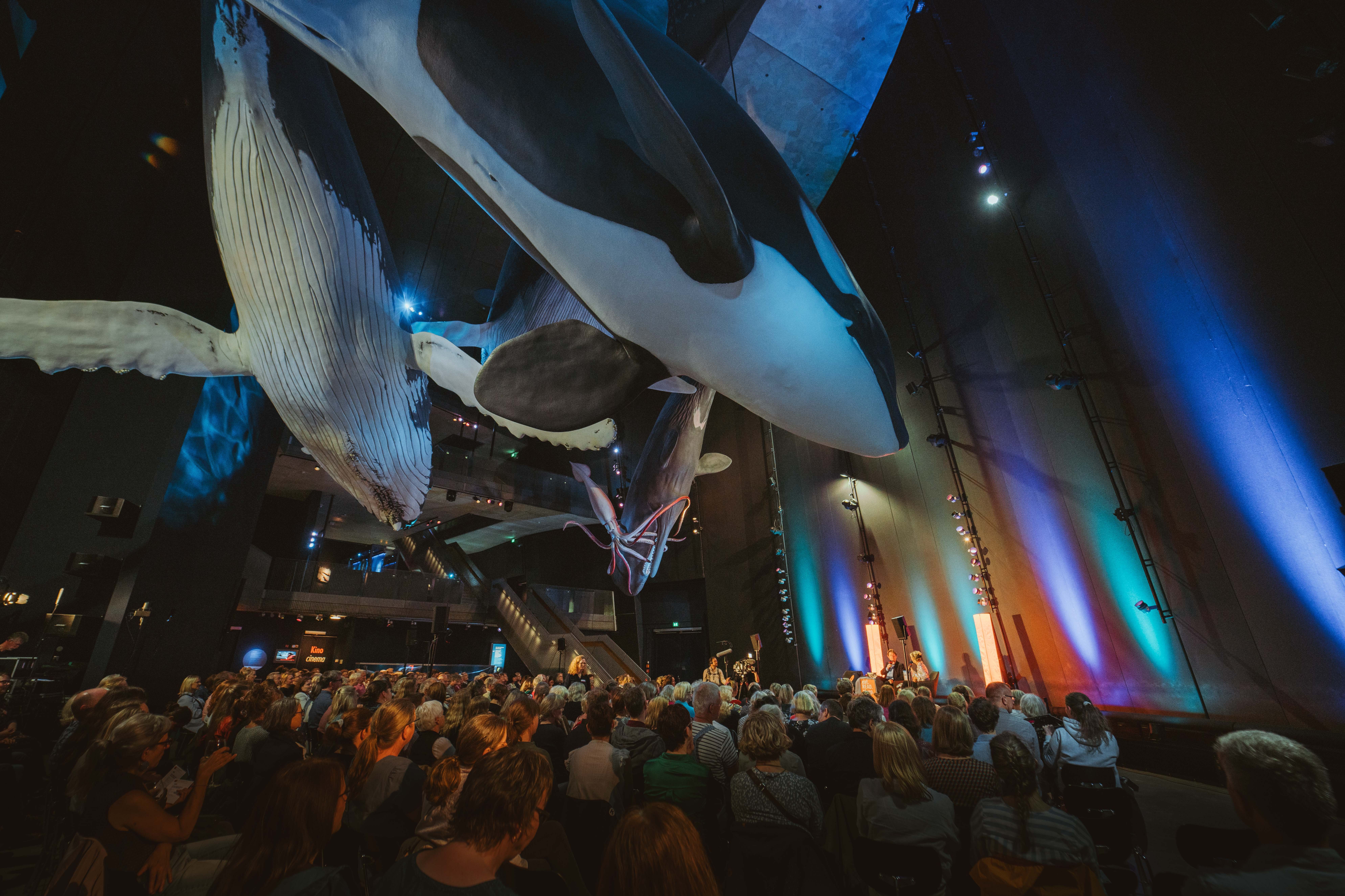Lesungen, Kinoabende, Podiumsdiskussionen und Konzerte finden in der Ausstellung „1:1 Riesen der Meere“ einen Ort, der vielseitige Veranstaltungsarten zulässt. Je nach Veranstaltungsformat kann mithilfe der Technik eine passende Atmosphäre geschaffen werden – von dezent bis farbenfroh.