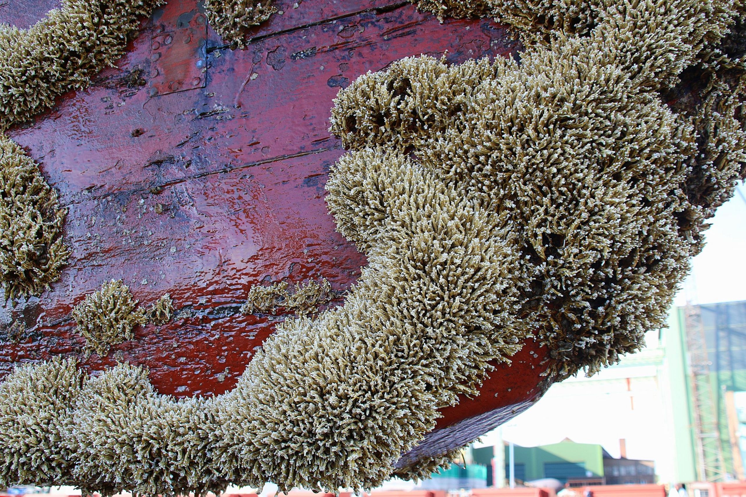 Ende Oktober habe ich an einem Freizeit-Boot im Unterwasserbereich korallenartige "Polster" entdeckt, die ich so noch nicht bei Schiffen, die auf der Werft aus dem Wasser gehoben wurden, entdeckt habe (siehe Bilder in der Anlage).